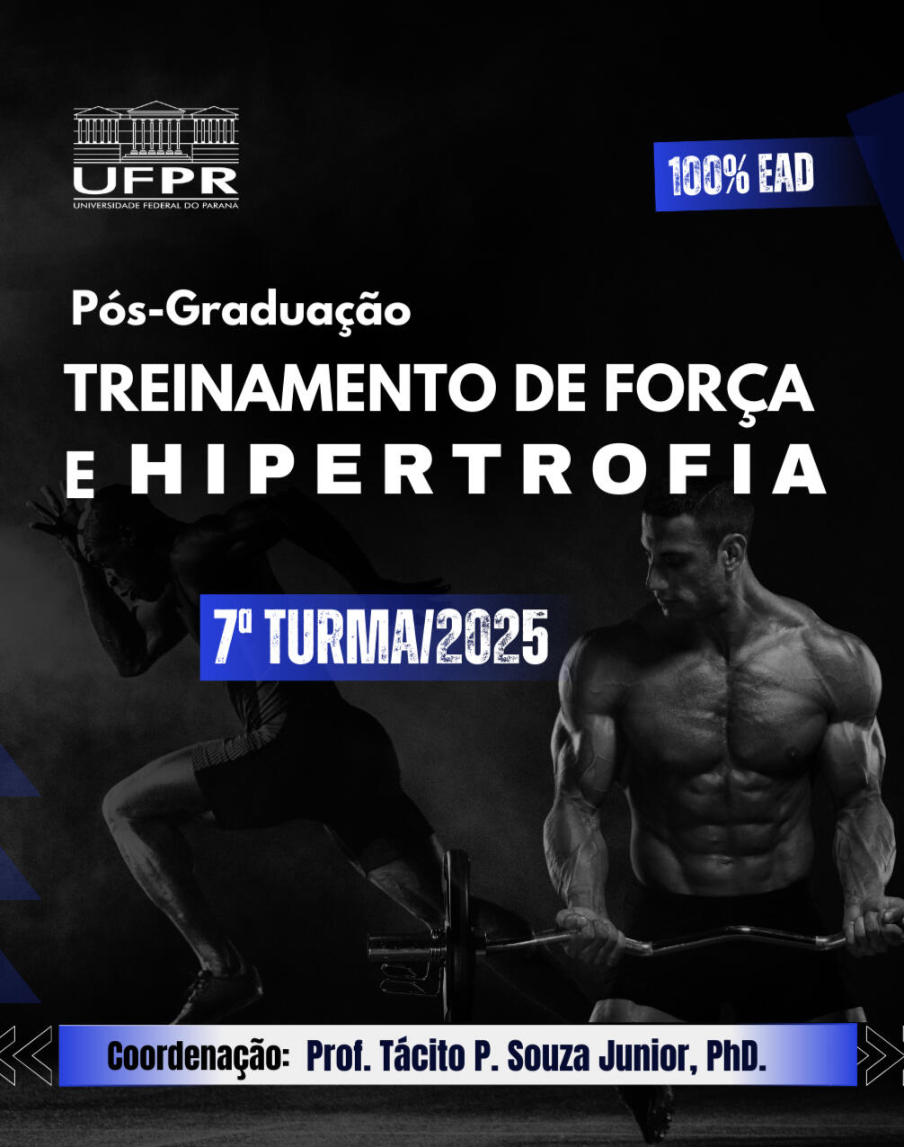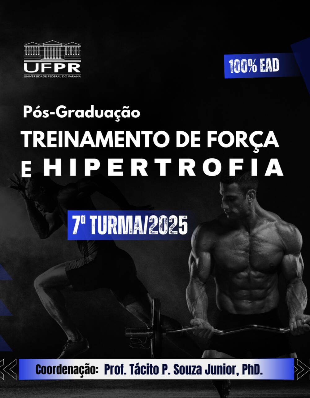 Essa é a 7ª turma da Especialização em Treinamento de Força e Hipertrofia da Universidade Federal do Paraná. Um curso voltado para profissionais que buscam excelência acadêmica e prática, com aulas ao vivo, professores de renome internacional e conteúdo 100% baseado em evidência.